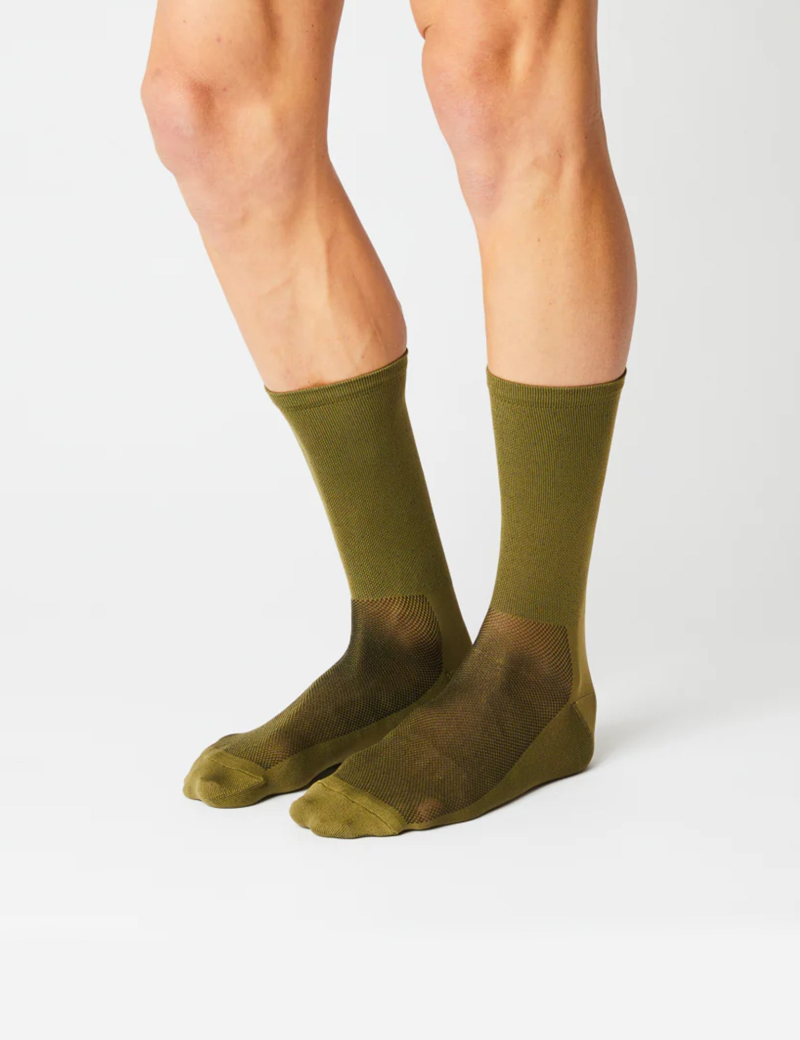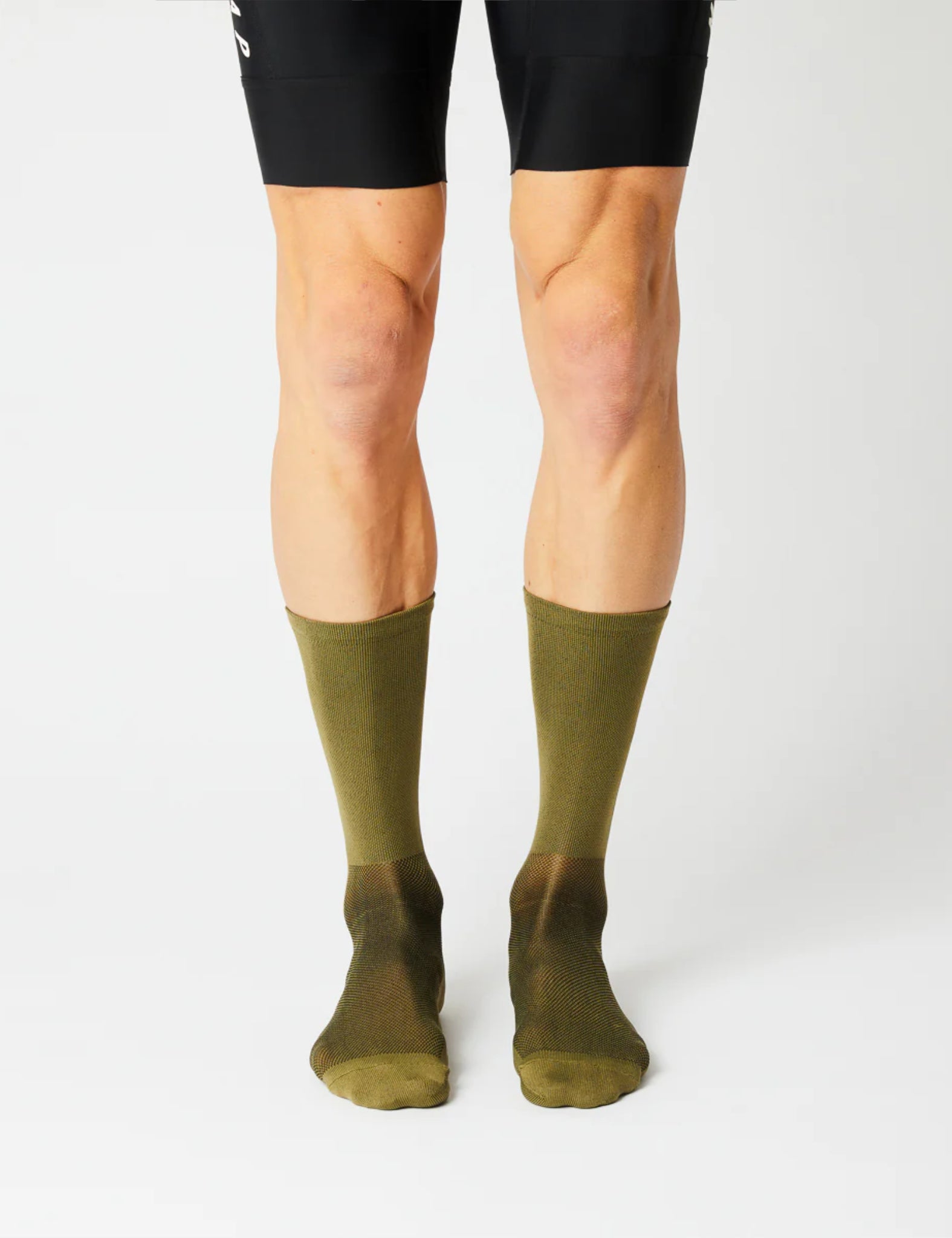 Be prepared to put your best foot forward with Fingers Crossed's classic olive green socks. Not only do they offer unbeatable design and performance, but the reinforced heel and toe ensure long-lasting comfort. Made with premium PROLEN YARN, these socks are a must-have for cyclists seeking top-quality features.