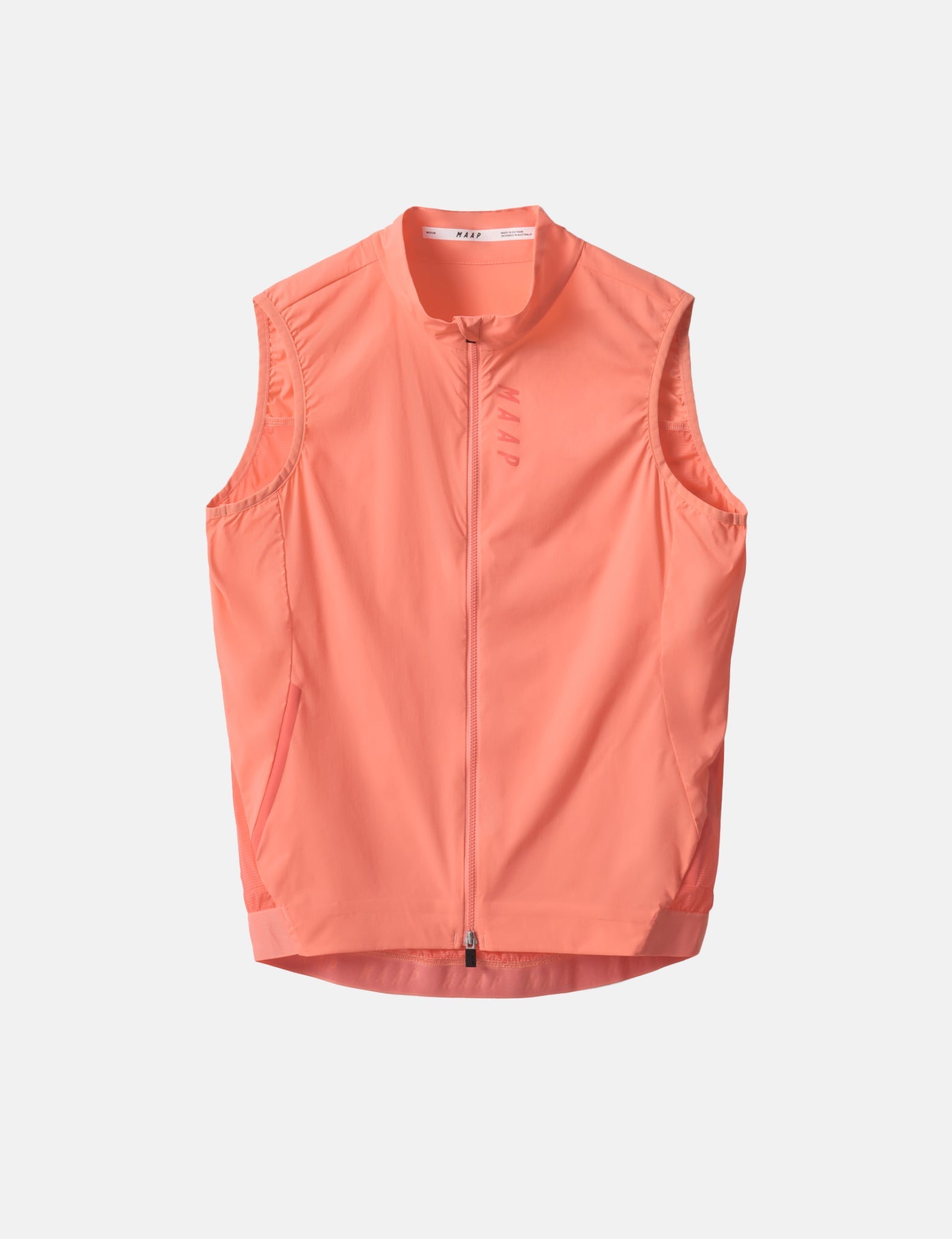 Introducing the Maap Flow Vest in Tangelo orange! This lightweight vest is perfect for changing weather, featuring smart design and laser-cut ventilation for protection, breathability and the perfect fit. With its compact size, it's great for both downhill rides and uphill adventures.