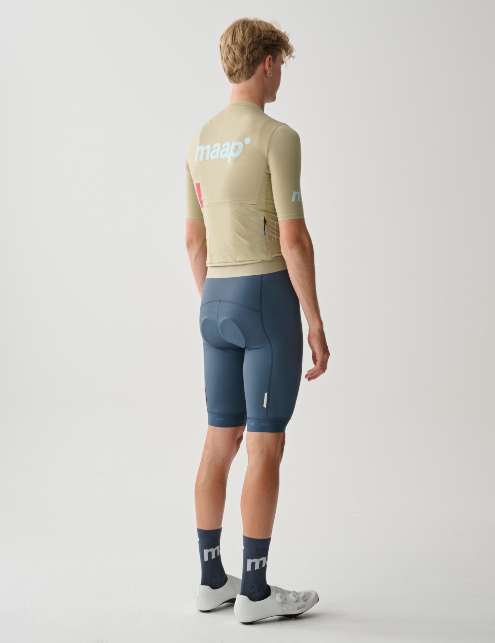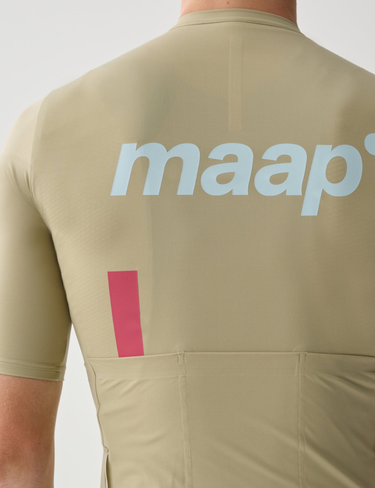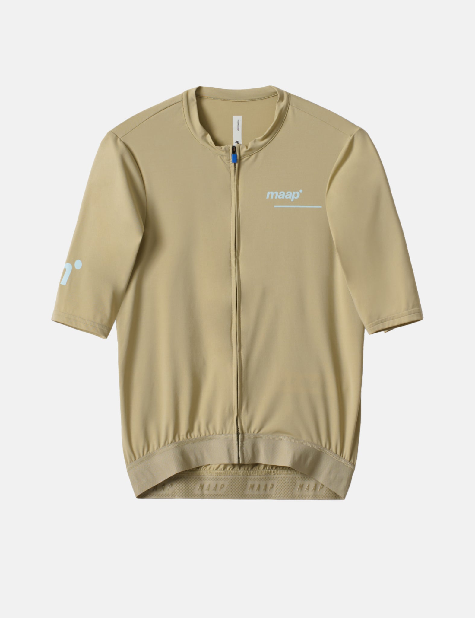The Maap Training Jersey crafted in this utility colour of elm khaki. This jersey will enhance your riding experience, every single day. A blend of strong, super-soft recycled materials and moisture-wicking technology results in a top that collaborates with you. MAAP's well-known slim fit ensures comfort and optimal agility, making it the perfect pick for any journey.