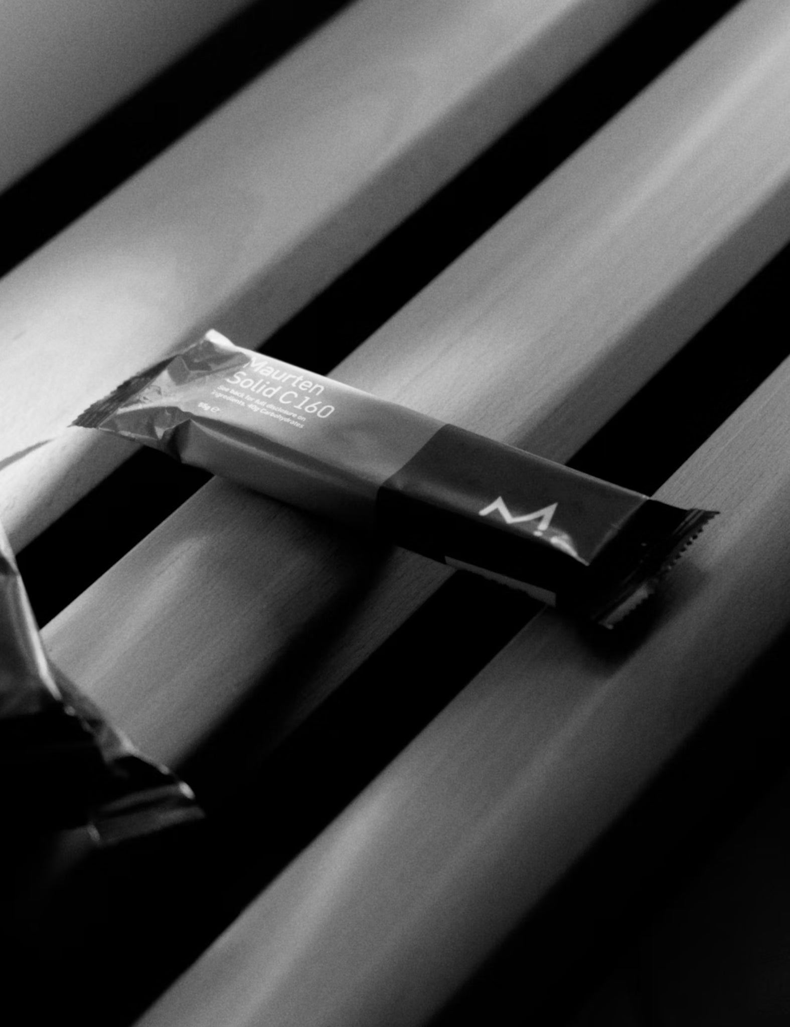 Maurten's Solid 160 bar is crafted with oats and rice, divided into two portions - one package containing two mini bars. With 40 grams of carbs divided evenly into 20-gram portions, this fueling essential is quick, light, low in fiber, and packed with carbs for optimal performance.