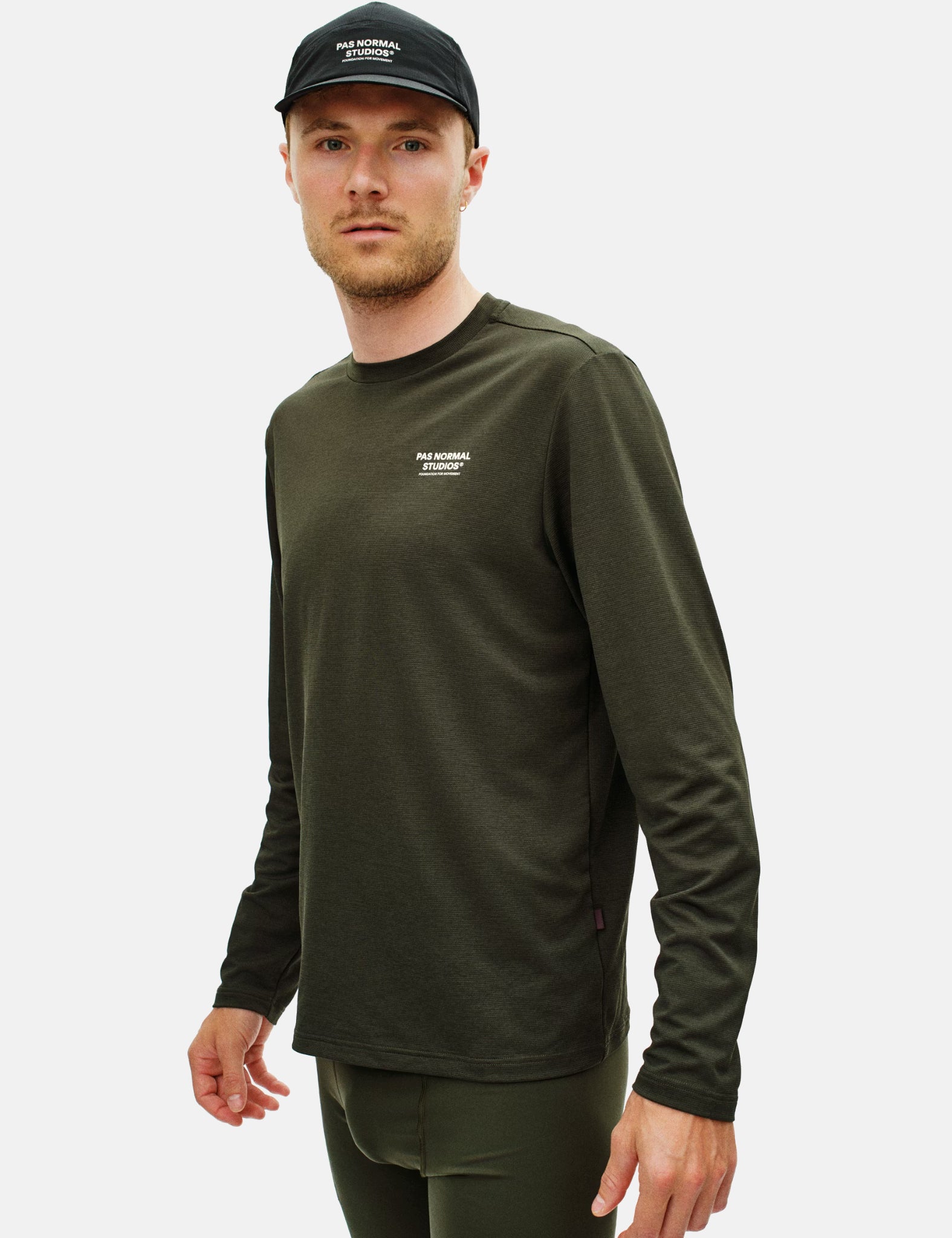 The Pas Normal Studios Balance long sleeve t-shirt in dark olive green is ready for whatever your day throws at you. Perfect for outdoor adventures, indoor workouts, or a run on the track or trail, it keeps you comfortable all the way.