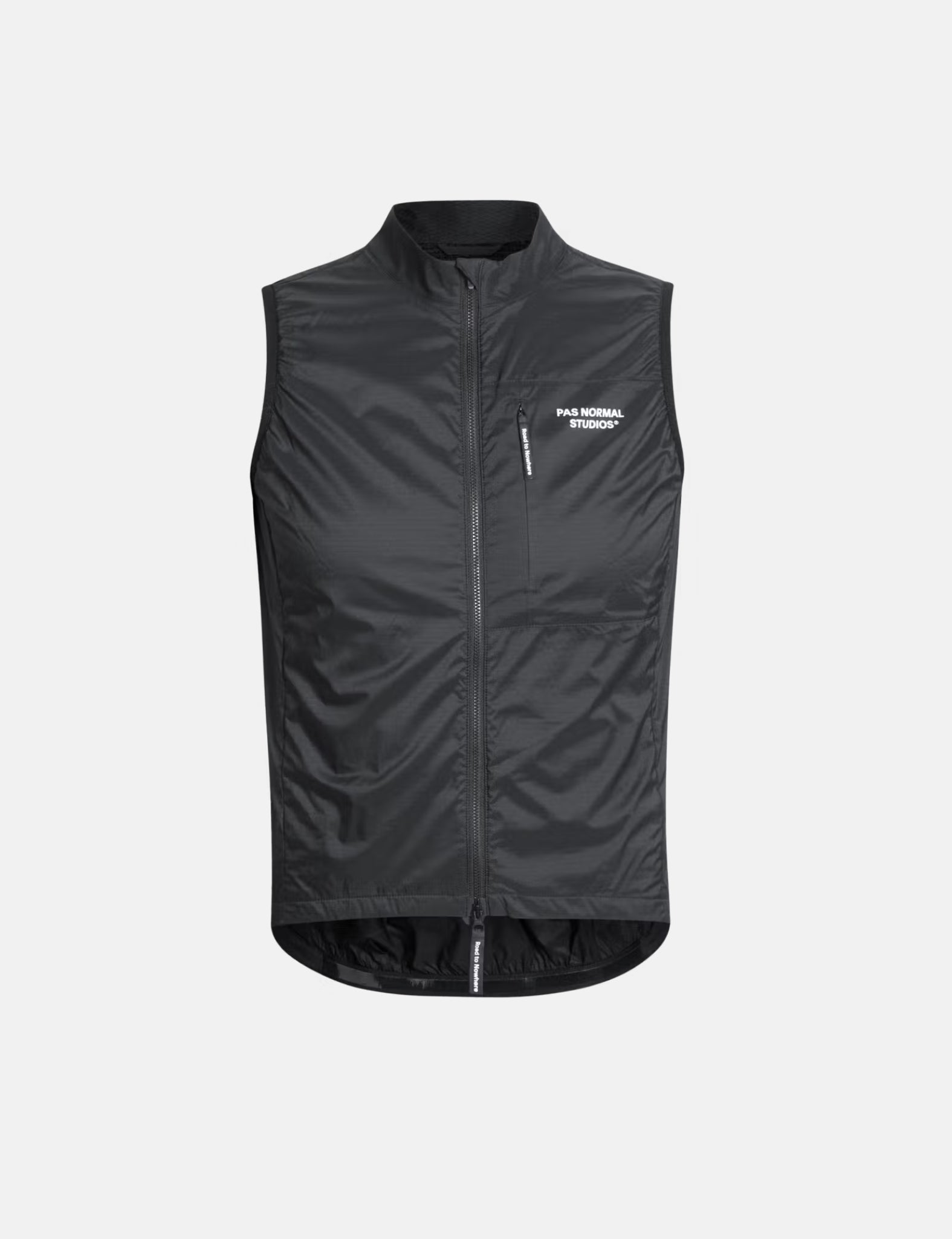 Introducing the Pas Normal Studios Essential insulated gilet in classic black. An enhanced fit update to the Insulated Gilet, engineered for serious cyclists. The refined sleeve cap shape positions perfectly on the bike for unrestricted movement, while the tailored chest width delivers a sleek, performance-focused fit without compromising layering flexibility.