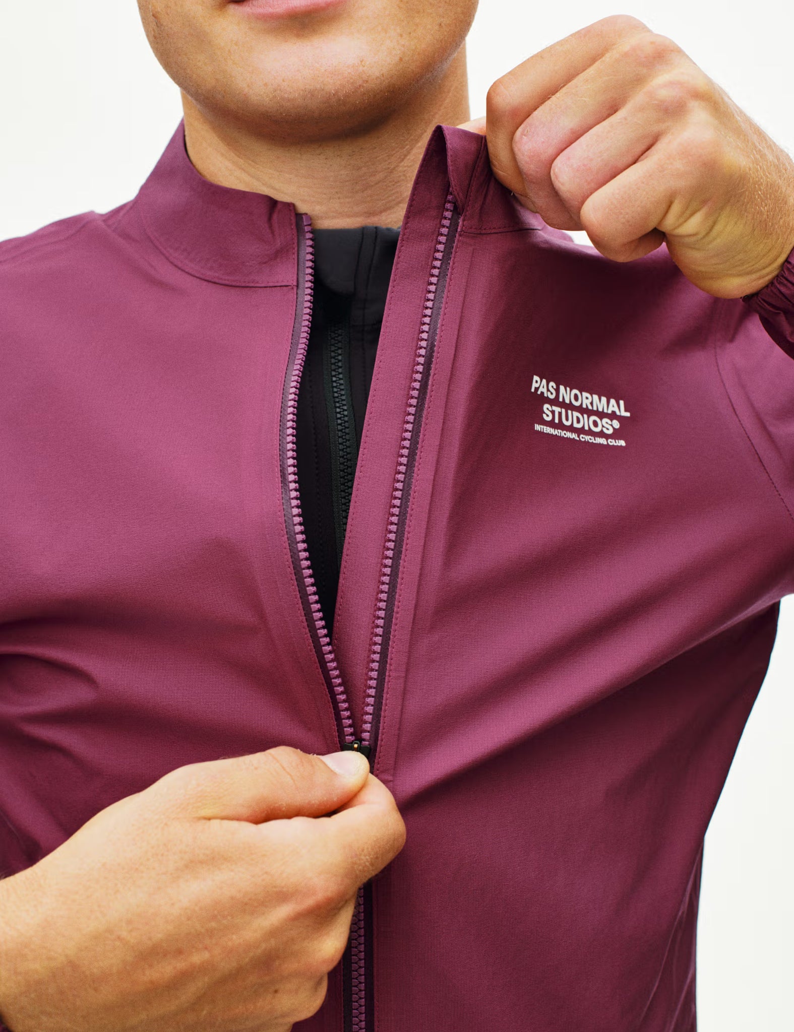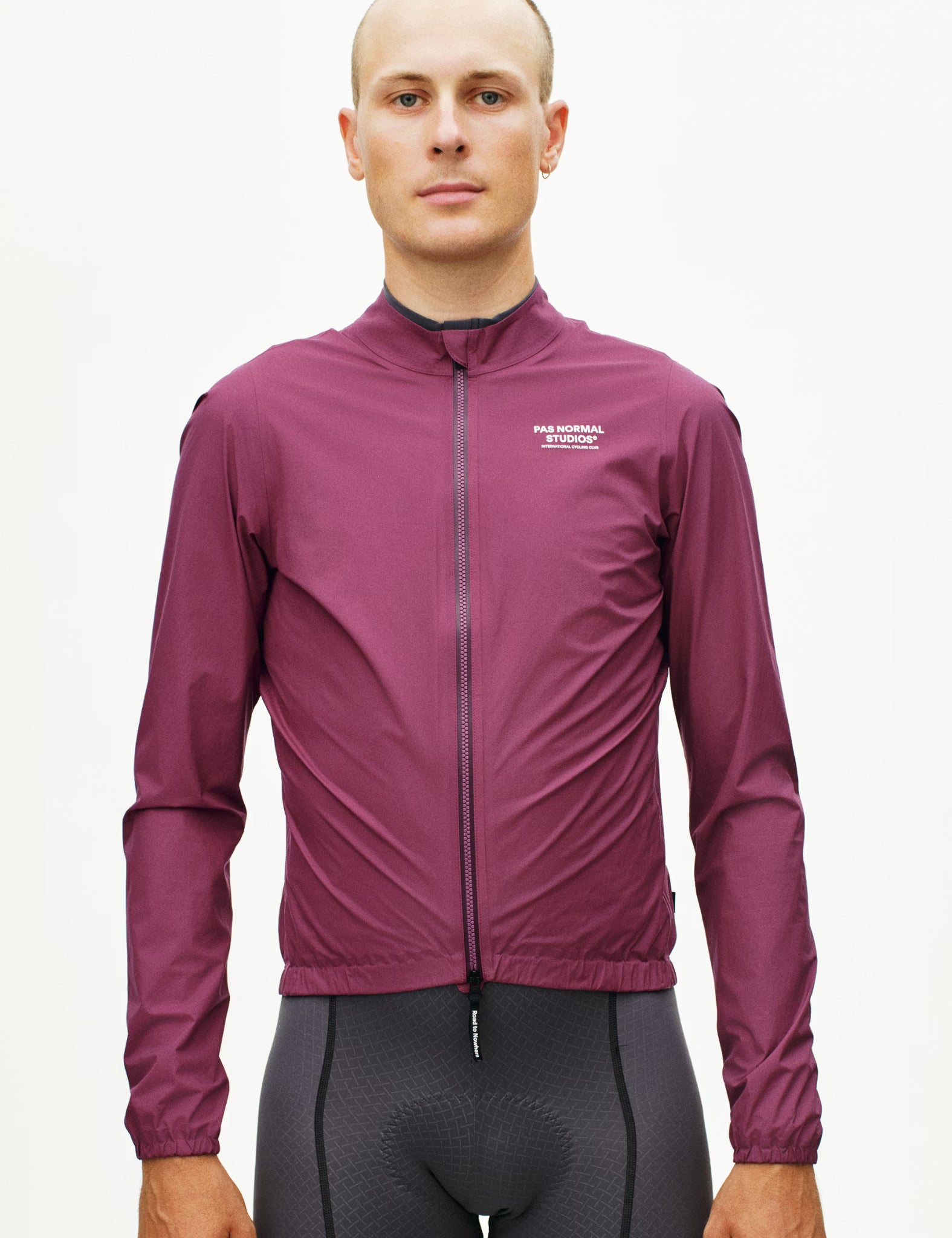 The Pas Normal Studios Mechanism Rain Jacket in plum is just what you need when the weather tries to spoil your ride. It combines a breathable Pertex Shield Air 3-Layer fabric with an air-permeable nanofibre membrane, keeping you dry without turning you into a sauna.