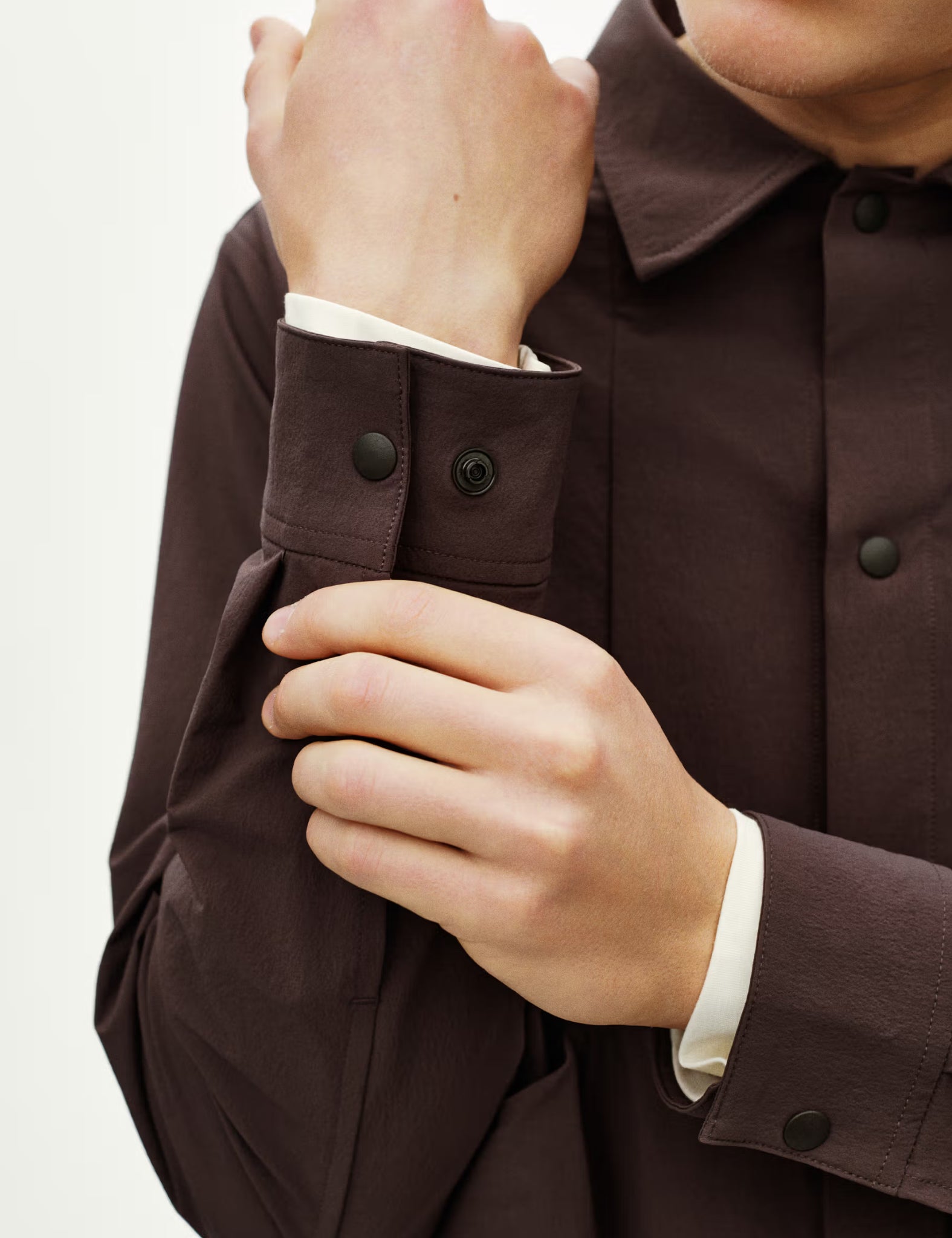 — Adjustable snap buttons at the cuff
