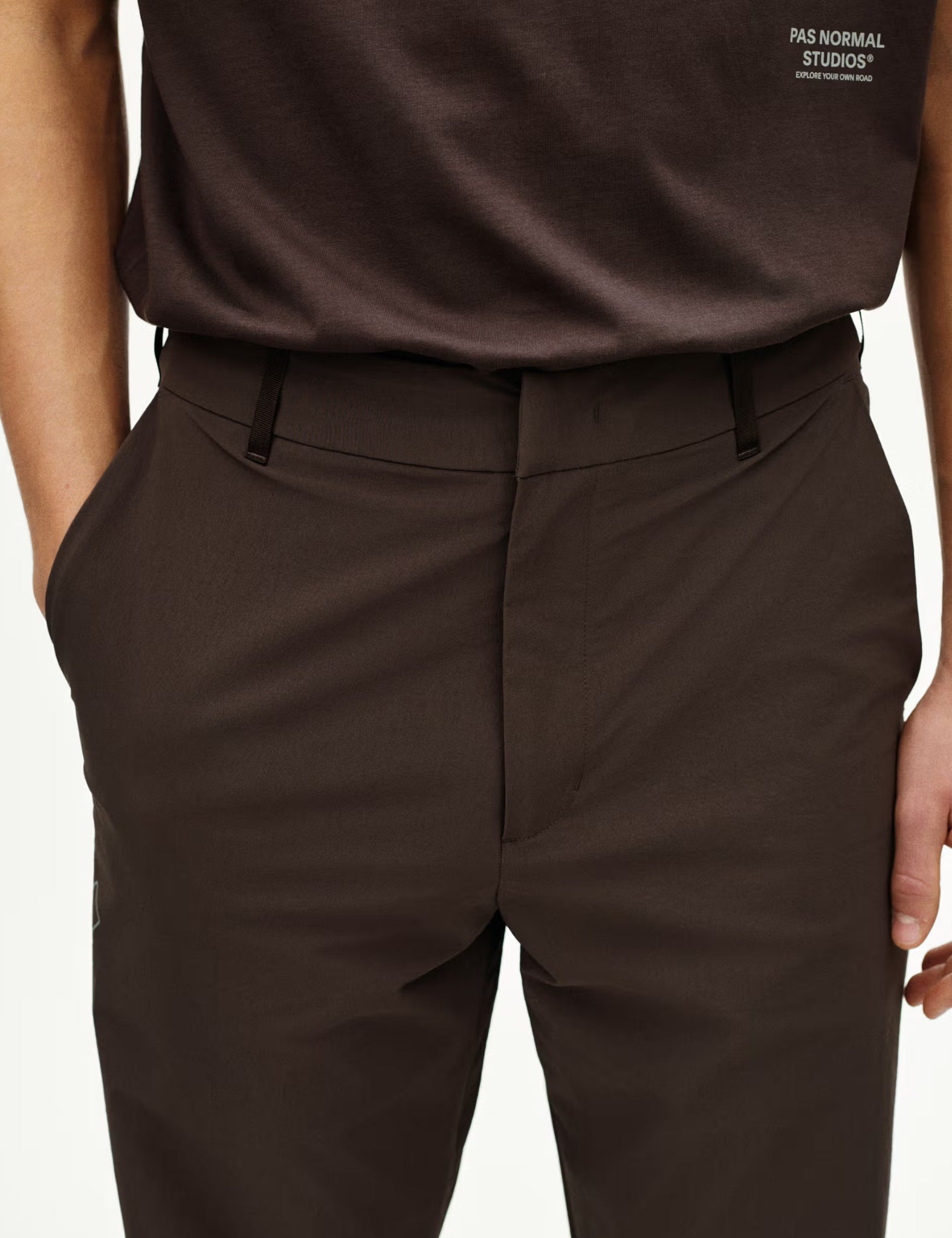 Engineered for cyclists who demand versatility, these Pas Normal Studios Off-Race Tech Pants seamlessly transition from pavement to pavement.
