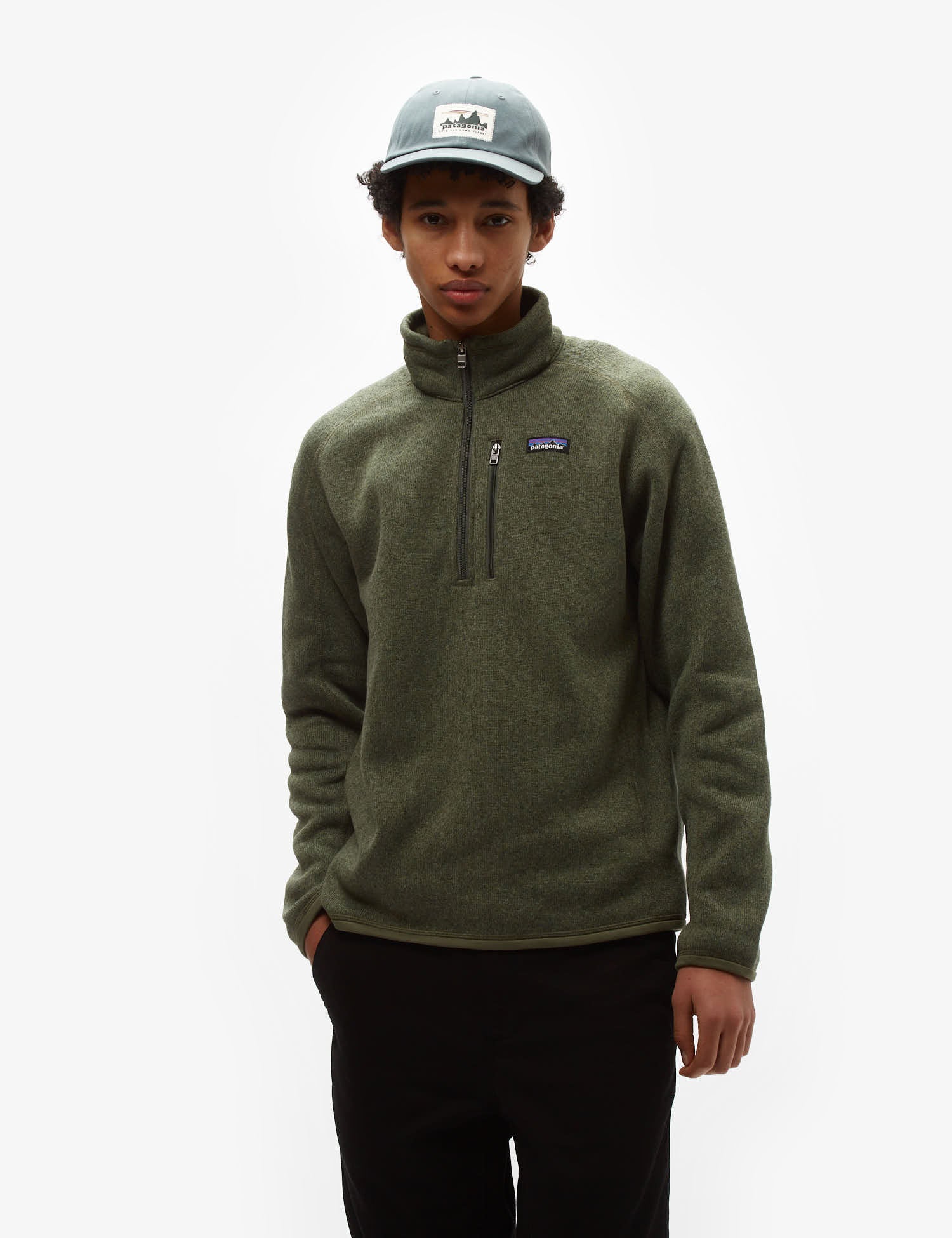 The Patagonia Better Sweater 1/4 zip fleece sweatshirt in industrial green from the Patagonia sweatshirts Autumn/Winter core collection.