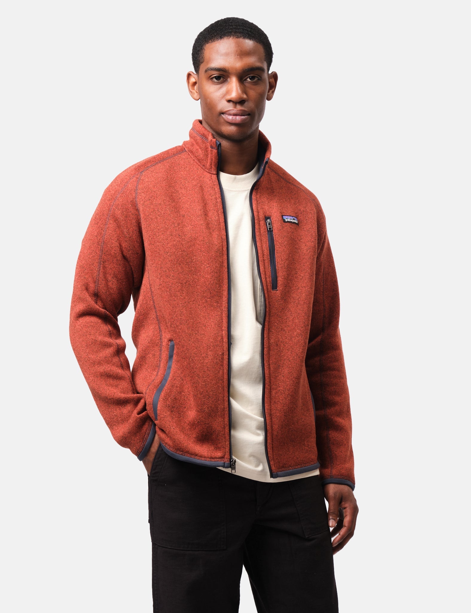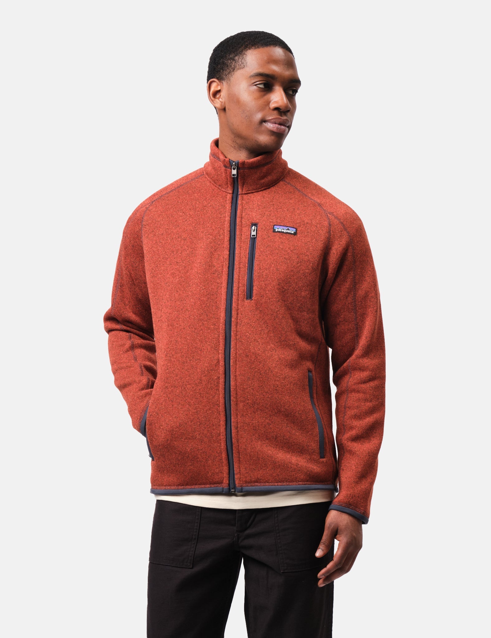 Introducing the Patagonia Better Sweater jacket in burnished red. Sustainably made in a Fair Trade Certified factory, this soft, full-zip jacket is the perfect blend of sweater-knit style and Better Sweater fleece practicality. It's fabric is infused with low-impact dye, saving on resources compared to traditional heather dyeing methods.