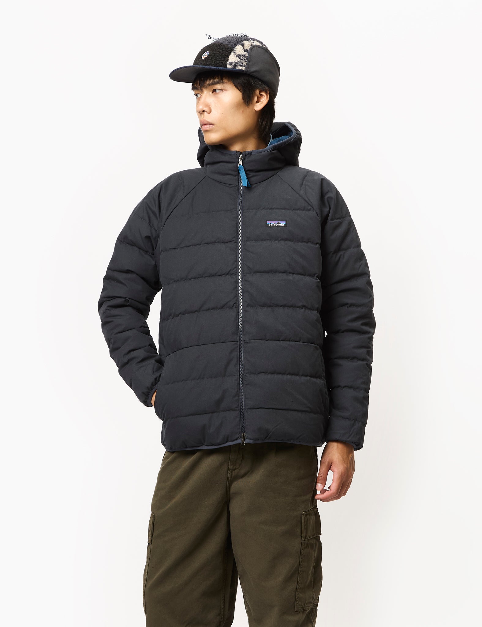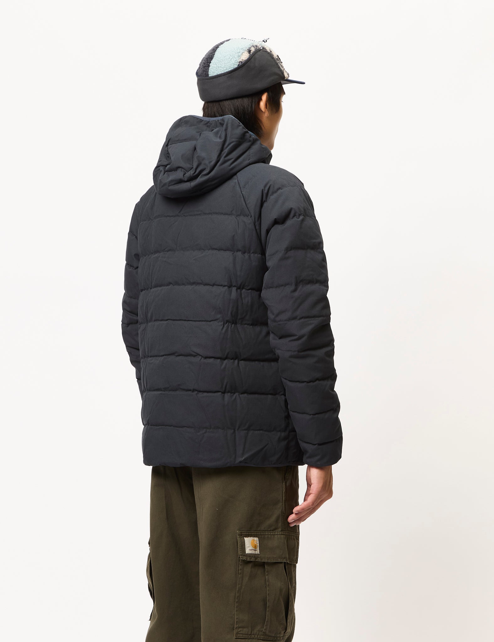 The Patagonia Cotton down jacket in pitch blue. Stay warm and stylish with this down-insulated, all-purpose cotton jacket, celebrating the switch from conventional to organic and regenerative cotton. Ethically made in a Fair Trade Certified™ factory.