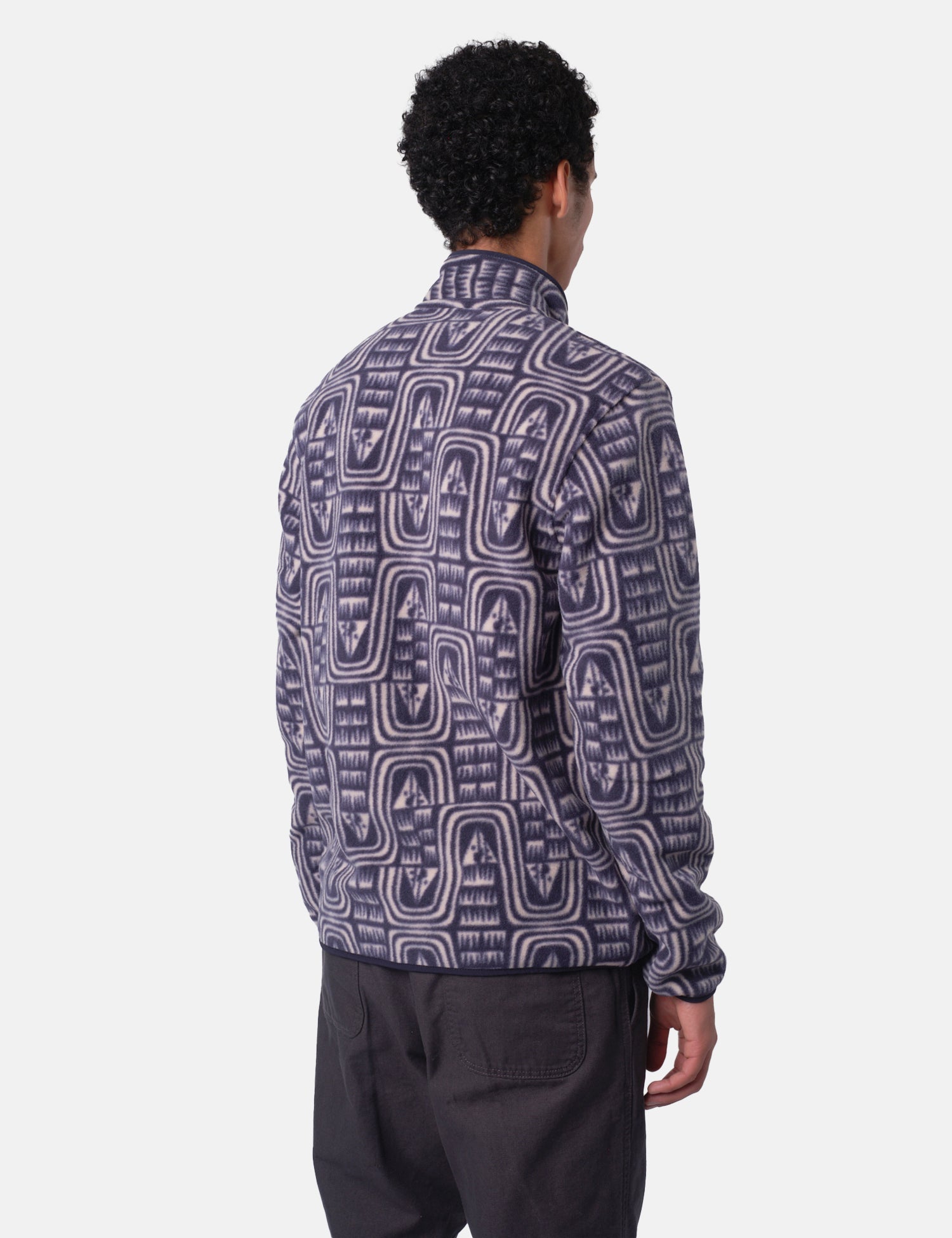 Experience the warmth of the Patagonia Lightweight Synch Snap-T Fleece Pullover, made with an allover sunken blue flow graphic. This remake of the signature Synchilla Snap-T Pullover is made from sturdy 95-100% recycled polyester double-sided fleece, making it perfect for any adventure.