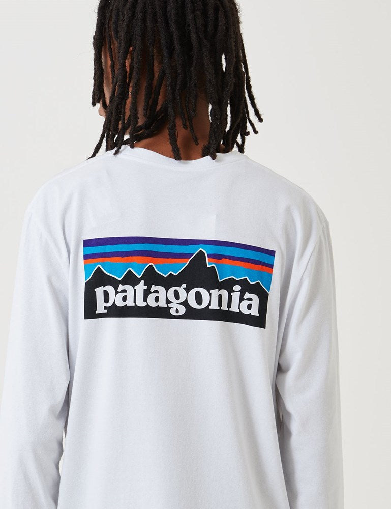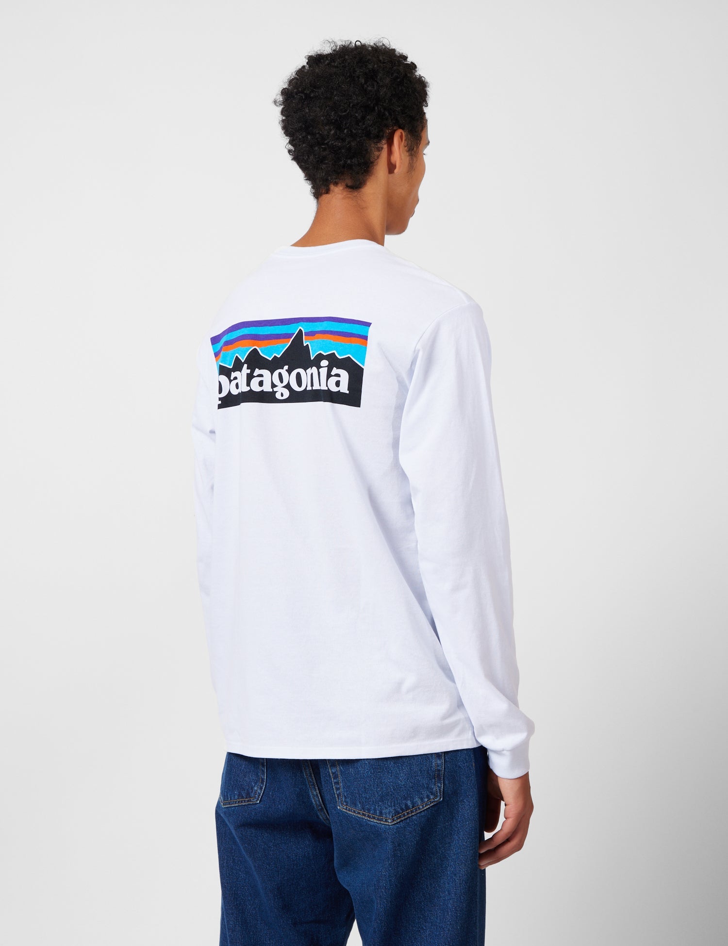 From Patagonia the Patagonia P-6 Logo Responsibili-Tee long sleeve t-shirt in White from the Patagonia t-shirts core collection.