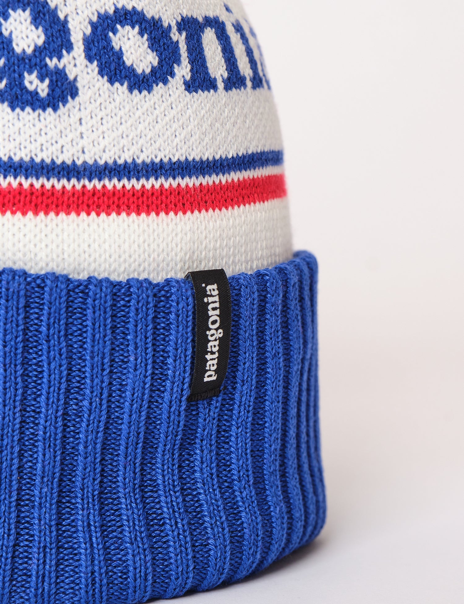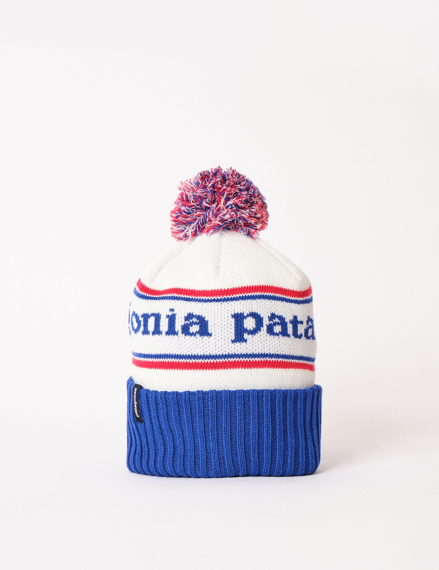 Made from 100% recycled featuring Patagonia branding and coloured stripe, finished with bobble.