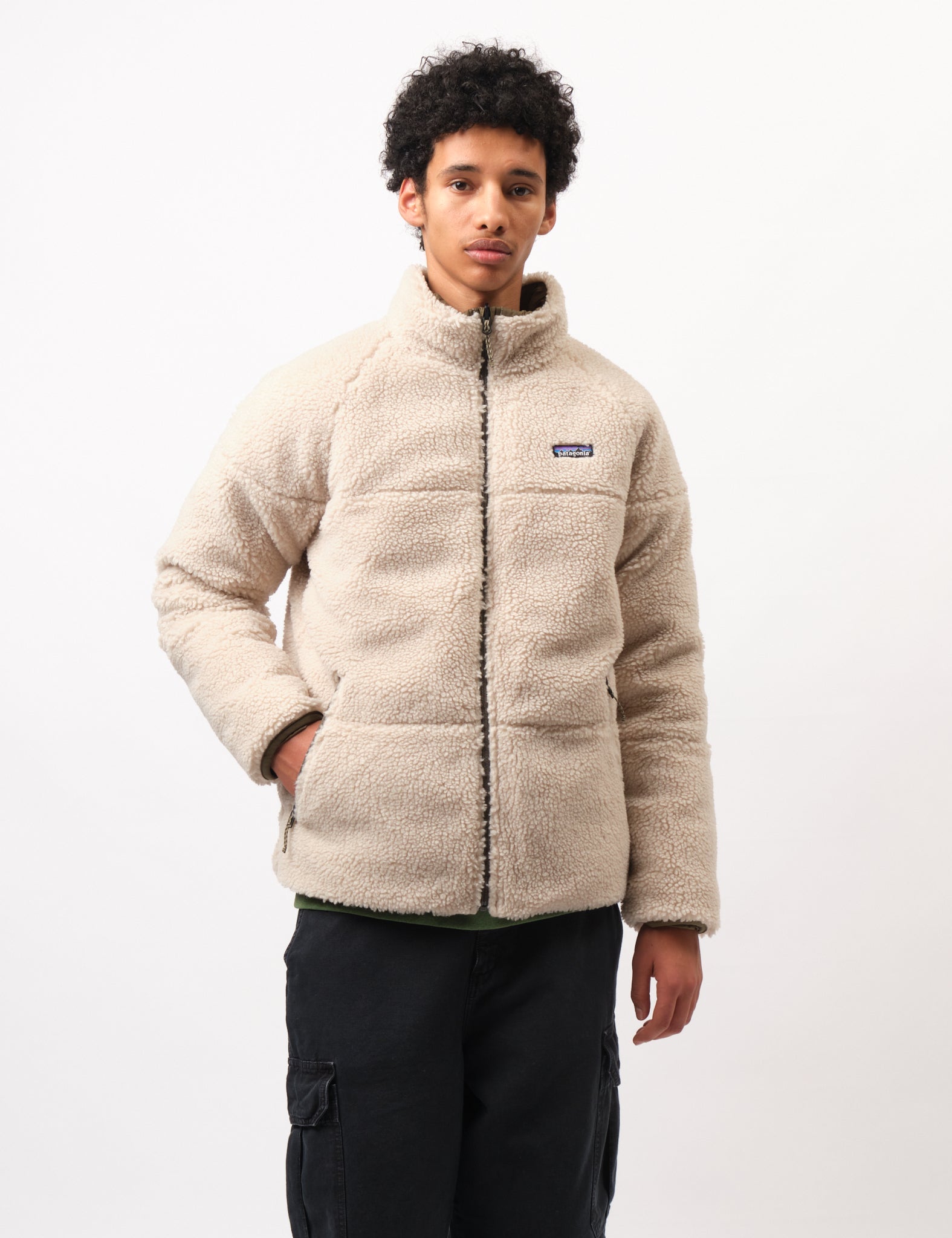 Snuggle up with the Patagonia Reversible Silent Down Jacket in basin green. This jacket has it all - supersoft Silent Down fabric on one side (perfect for posing in front of the camera), and cozy high-pile fleece on the other (for those days when you just want to hide away).