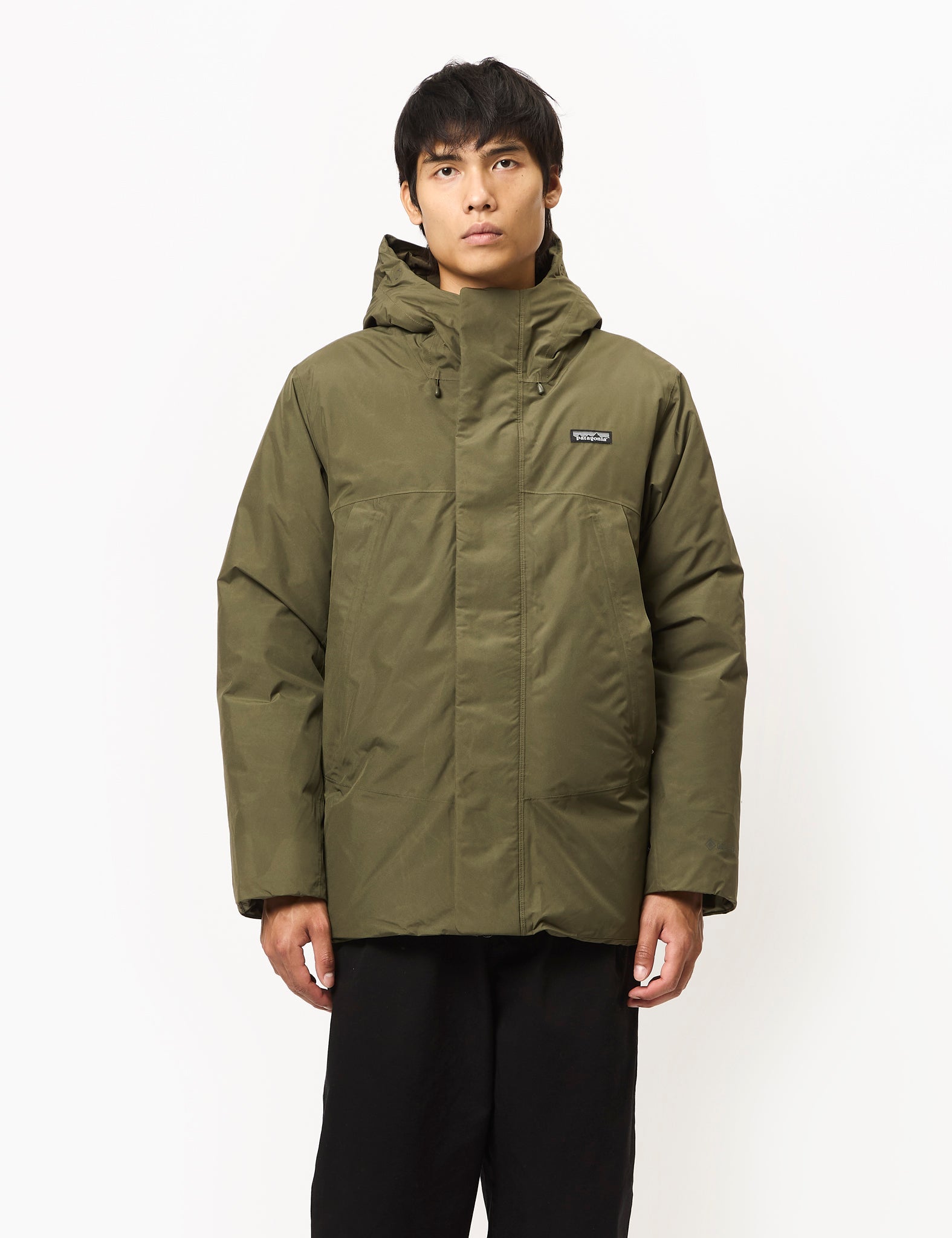 Stay cozy and eco-friendly with the Patagonia Stormshadow Parka in Basin Green. This parka is packed with 700-fill-power 100% Recycled Down and features a GORE-TEX ePE 100% recycled polyester plain-weave face fabric.