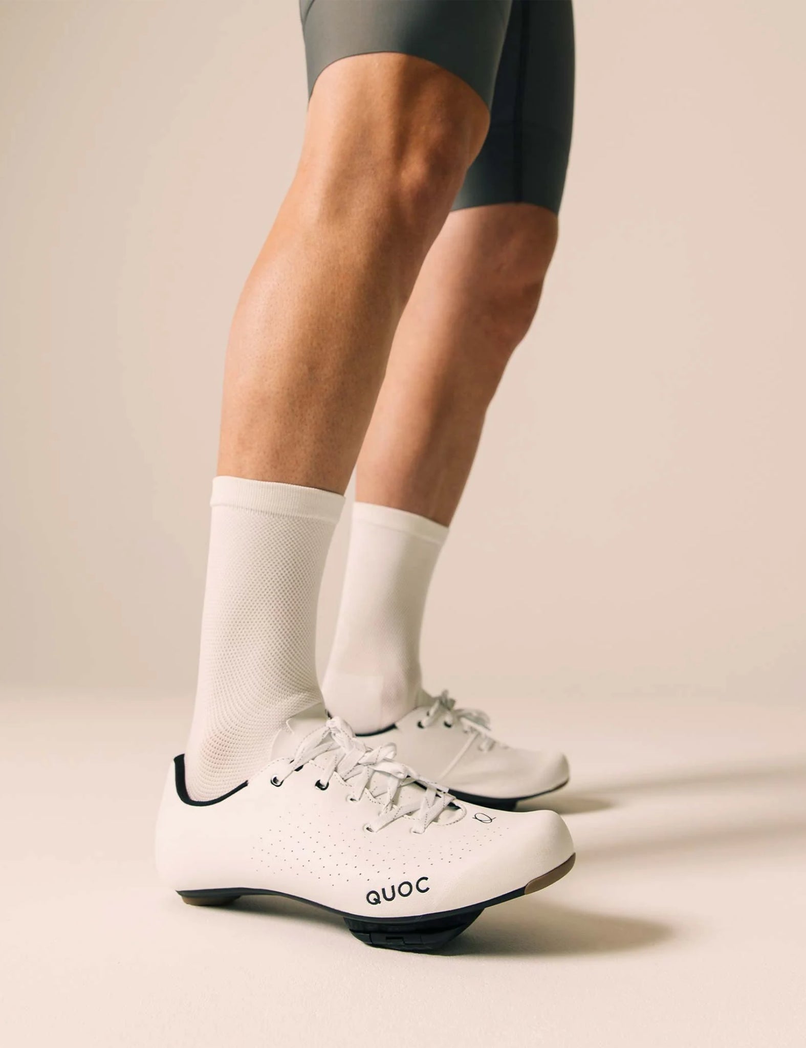 Experience the perfect blend of performance and style with the QUOC Escape Road Lace cycling shoes. Combining the comfort of a dial shoe with the elegance of laced design, these shoes are ready for any terrain. The carbon composite outsole provides a balance of stiffness and comfort, perfect for long distance rides.