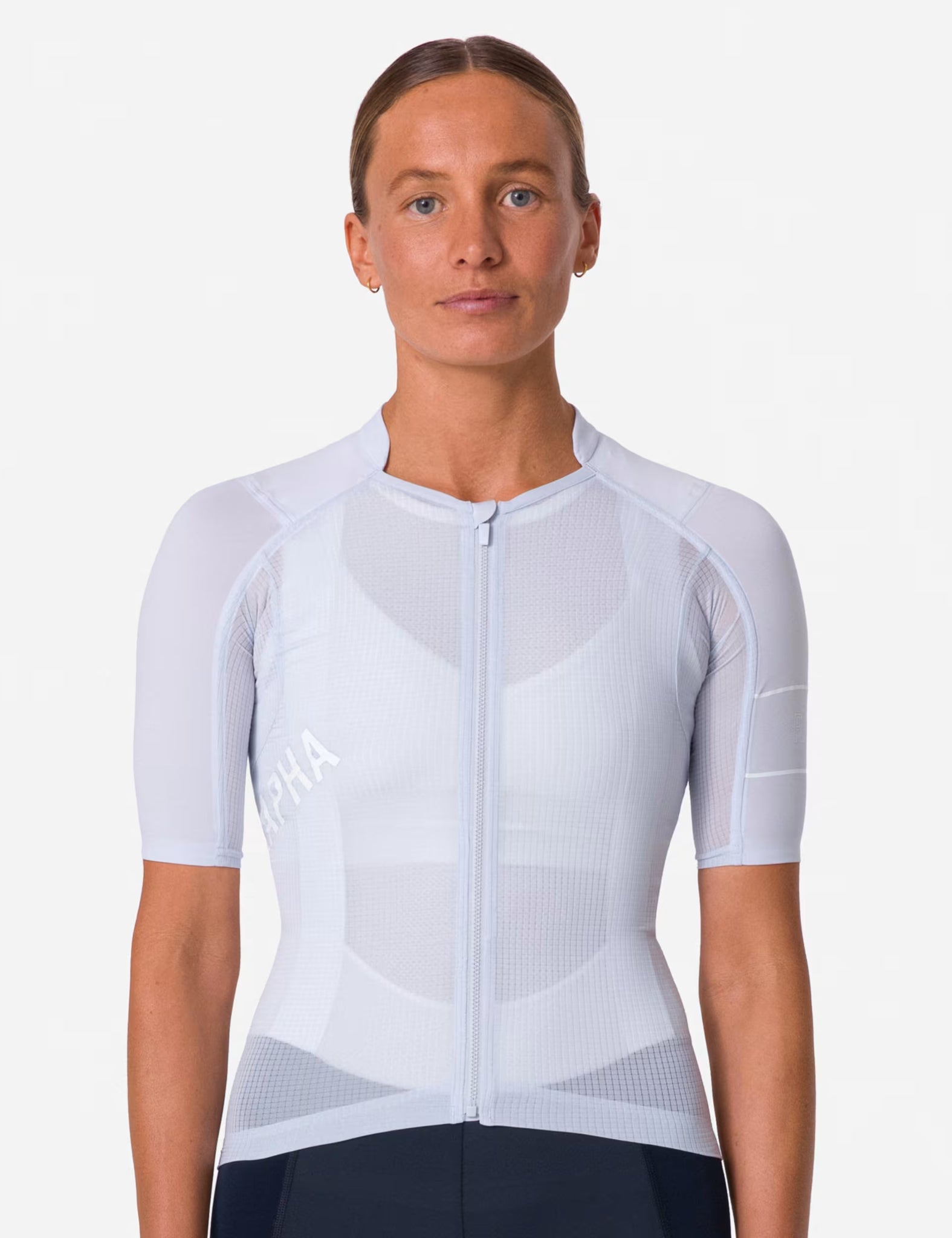 Experience year-round flexibility and layering options with Rapha Women's Pro Team Lightweight Jersey in arctic ice, and white alyssum.
