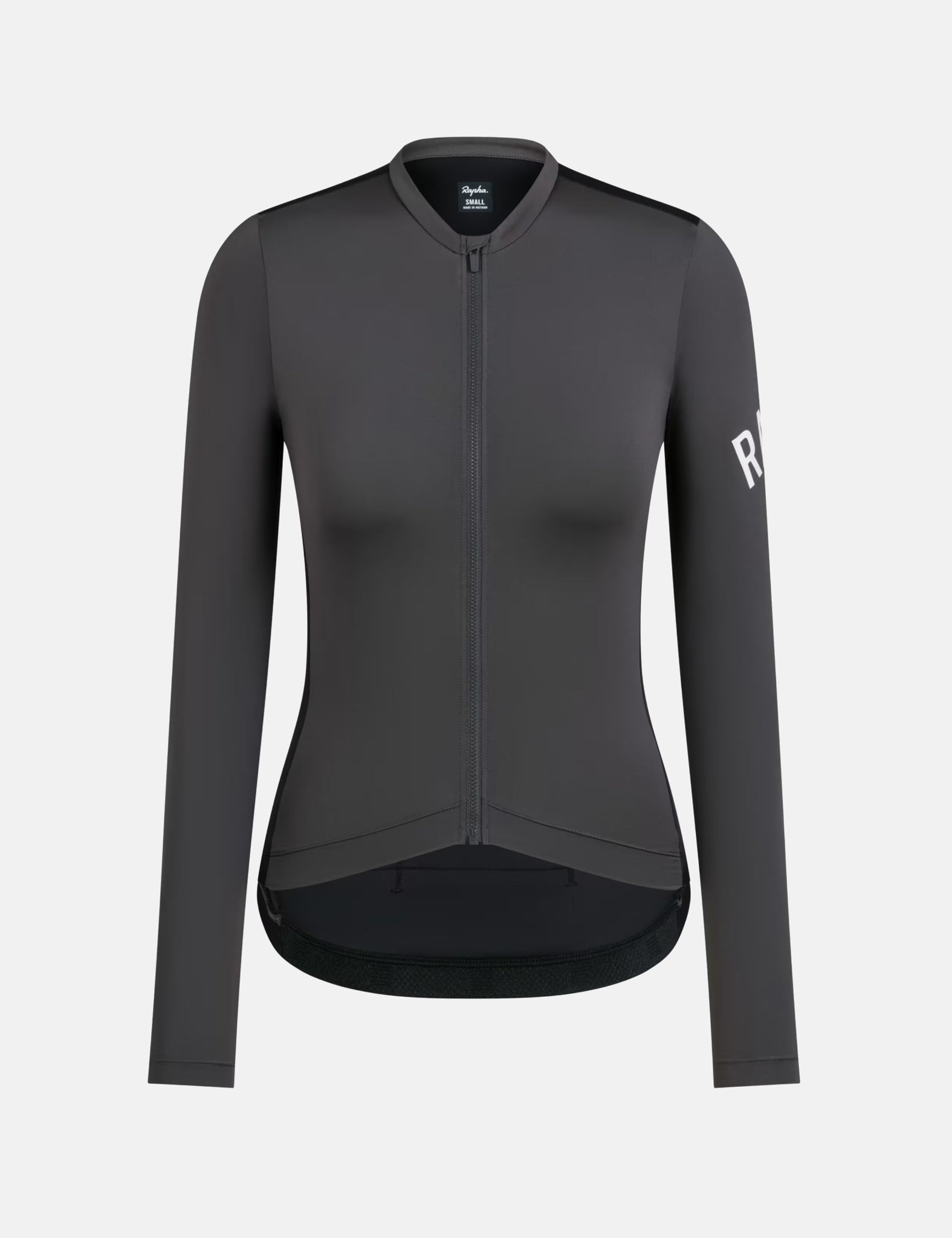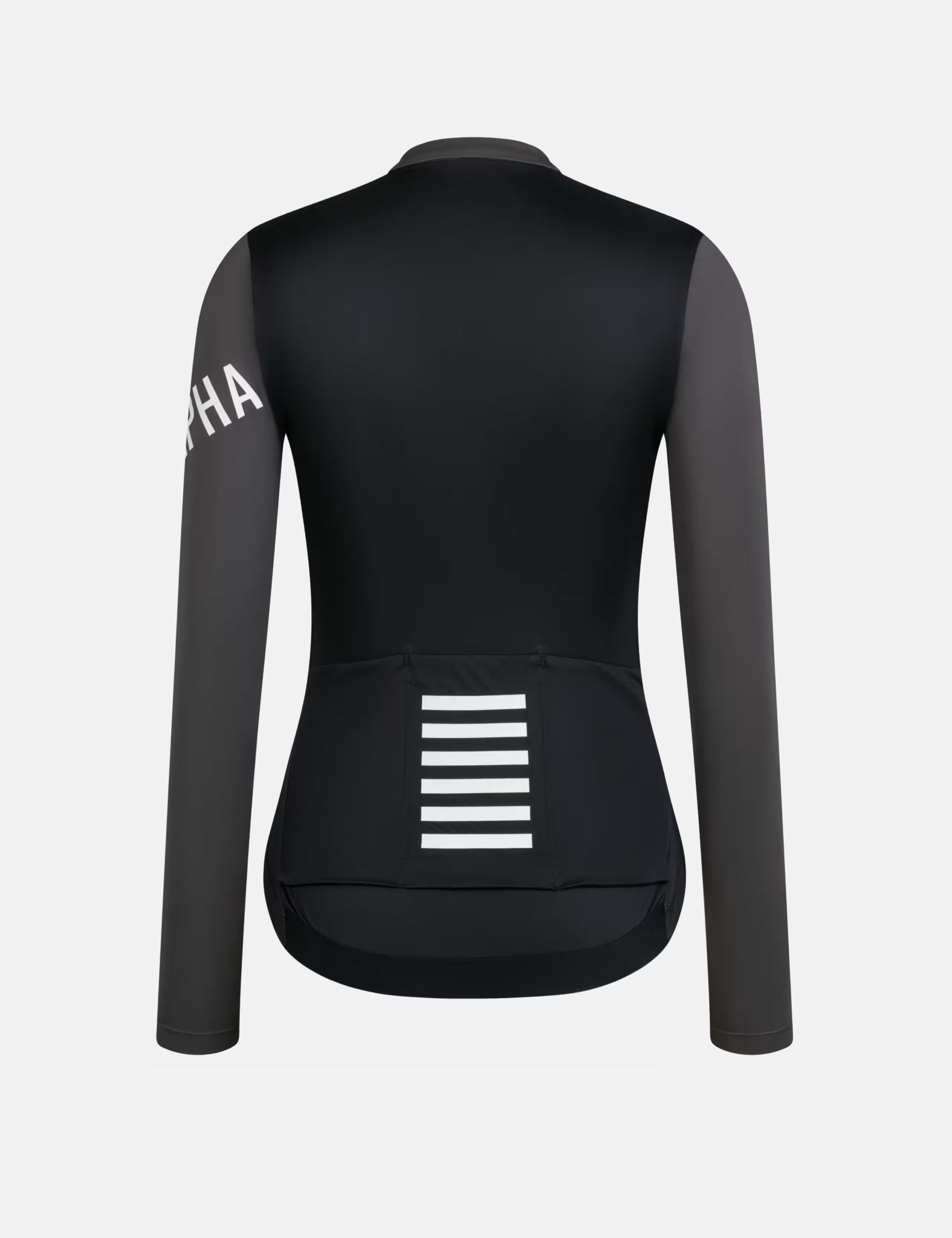 Experience year-round flexibility and layering options with Rapha Women's Pro Team Long Sleeve Lightweight Jersey in dark grey and black.