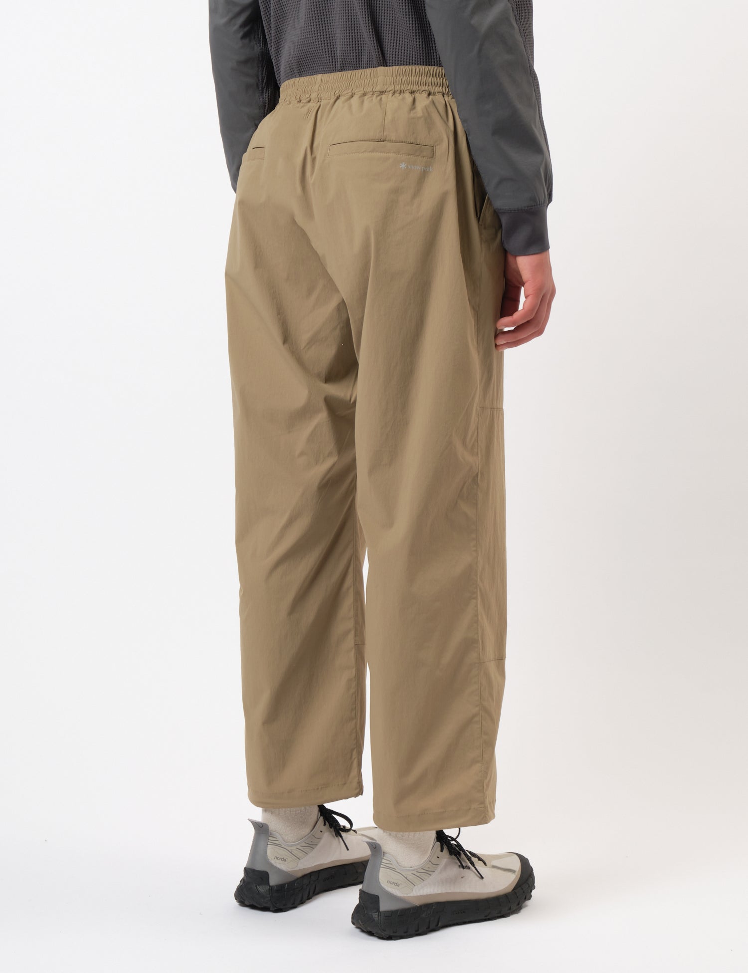 The Snow Peak New Standard Easy Wide Pants in greige bring effortless comfort and style to your day. Crafted from a light stretchy nylon mix with a water-repellent finish, they keep you cool and dry through light drizzles.