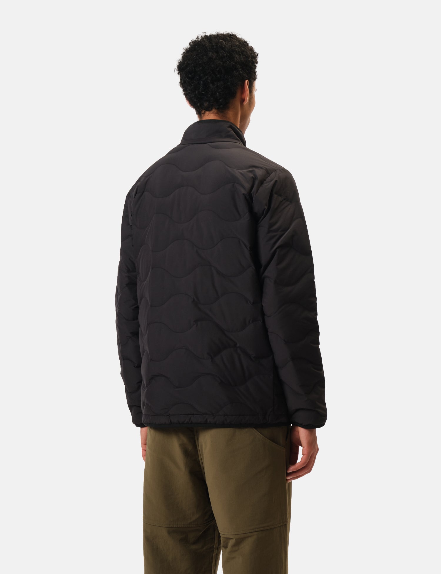 The Snow Peak Seamless Quilted Down Jacket in black strikes the perfect middle ground between bulky coats and light mid-layers. Its military-inspired quilting and stand collar bring style and function together.