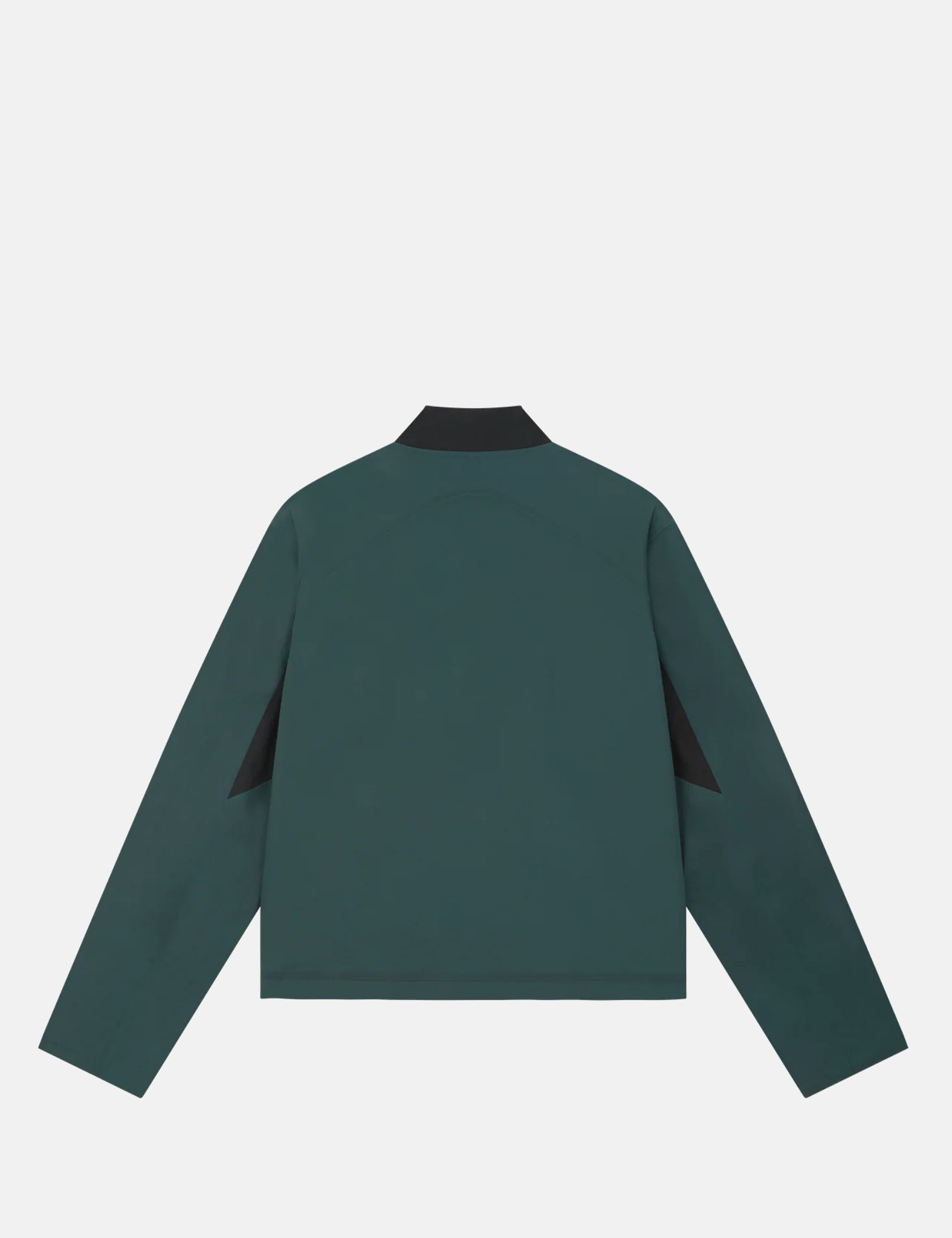 The Soar Running Ultra Bomber in green and black is a lightweight, windproof cropped jacket crafted from crepe-textured woven fabric. Designed with gusseted underarms for unrestricted movement and bonded seams for durability, it offers a sharp yet relaxed fit.