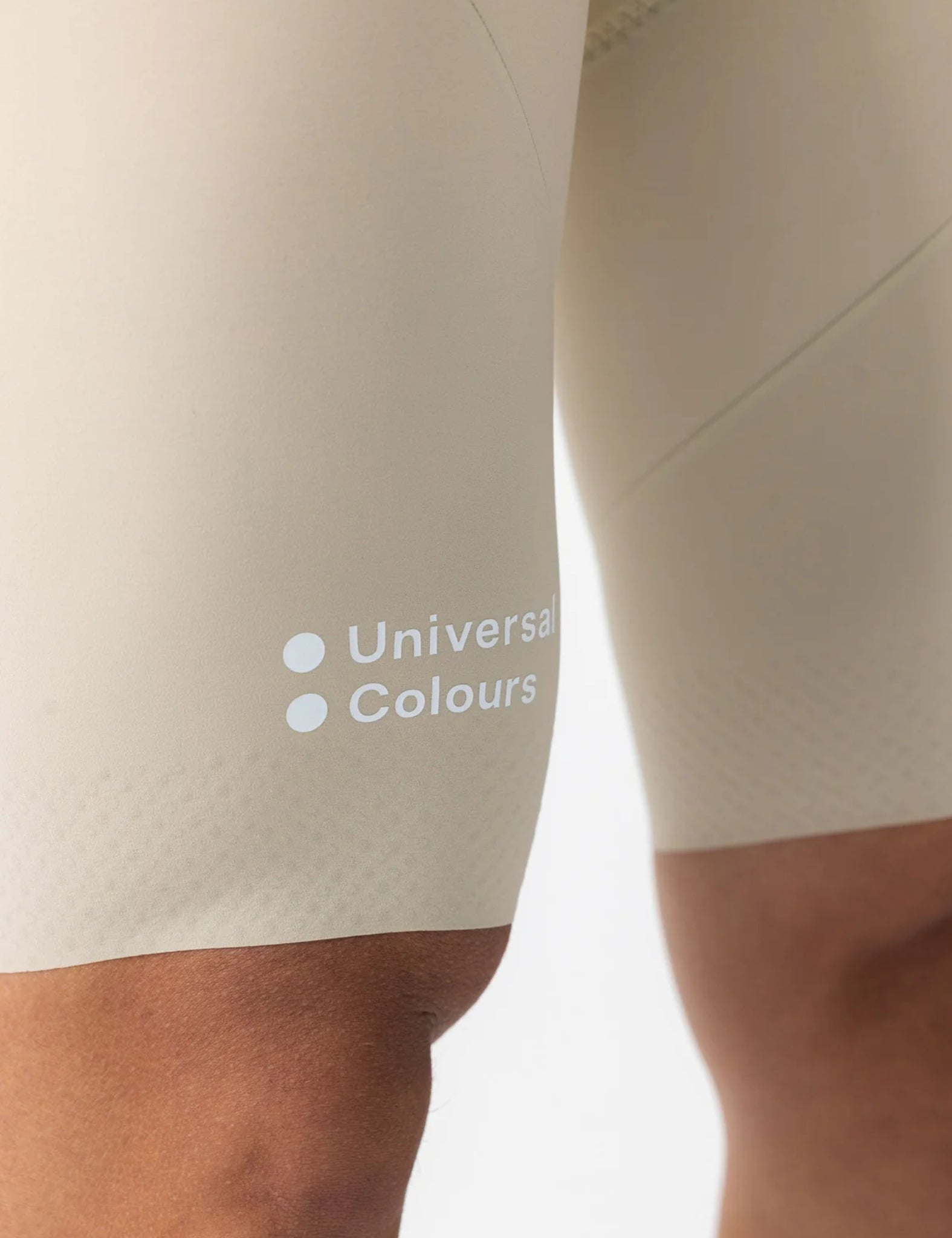 The Universal Colours Chroma Bib Short in warm grey boasts the highest performance, style, and durability thanks to fine French woven nylon.