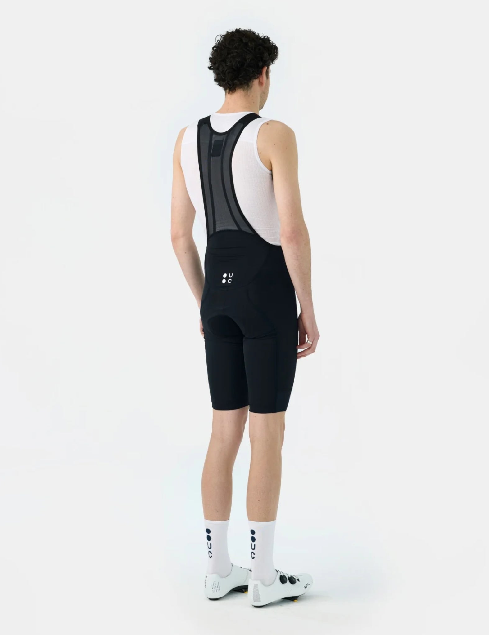Revamp your cycling gear with the Universal Colours Mono Bib Short in sleek black. The new male-specific padding includes a large front cup and bio-based foam topper for unbeatable support and breathability. Perfectly paired with cropped jerseys, the waist is heightened and the stretchy bib straps are enhanced with a breathable, ribbed design. Plus, enjoy an extended inseam for added comfort.
