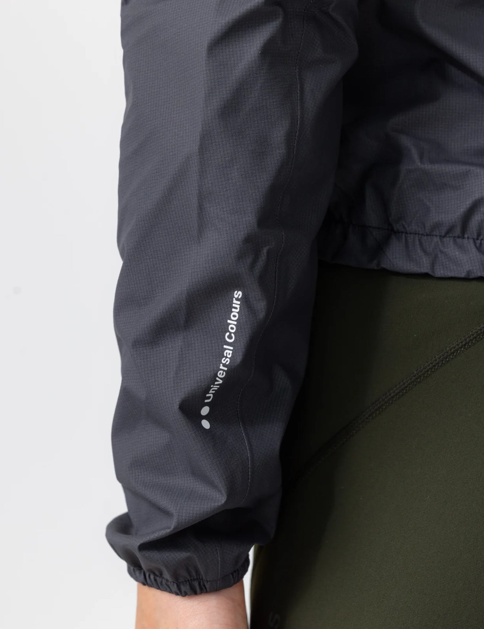 Stay dry in any weather with the Universal Colours Mono Rain Jacket - Black. This outer layer easily fits in your jersey pocket and is perfect for everyday wear.