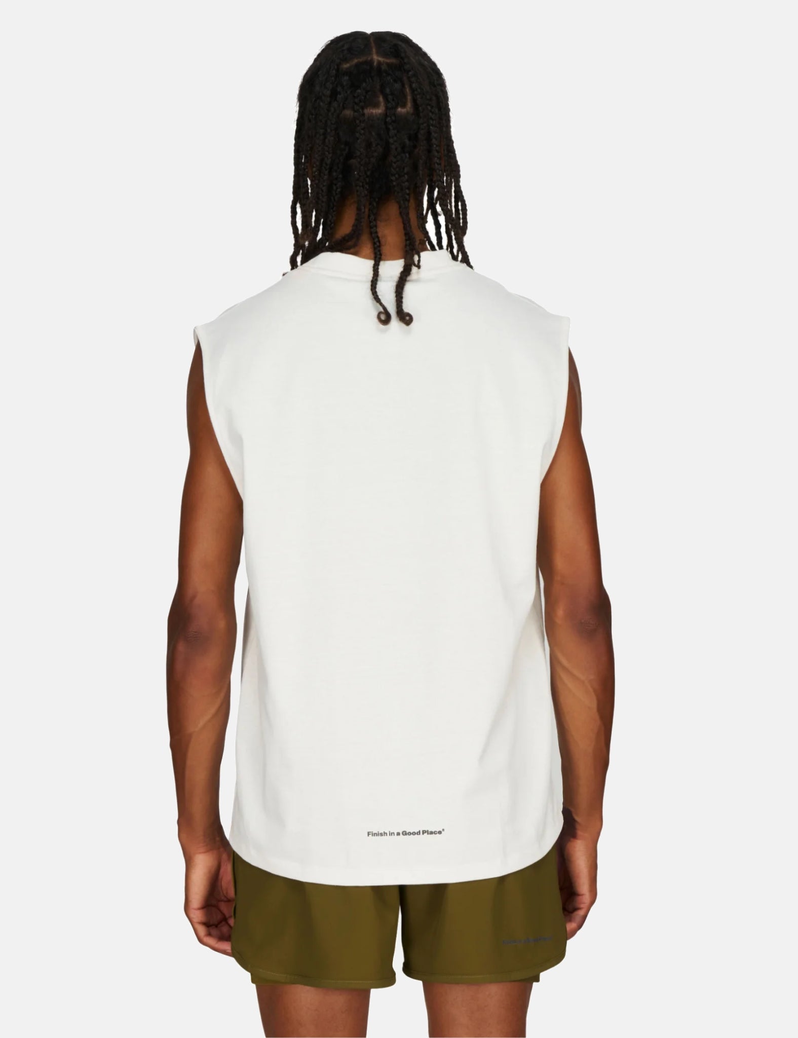 Say hello to the UNNA gents' tank top in vanilla white, boasting a regular fit. Crafted from a blend of organic cotton and recycled polyester, featuring a reflective transfer print of the UNNA logo on the front and a reflective "Finish in a Good Place" slogan on the back.