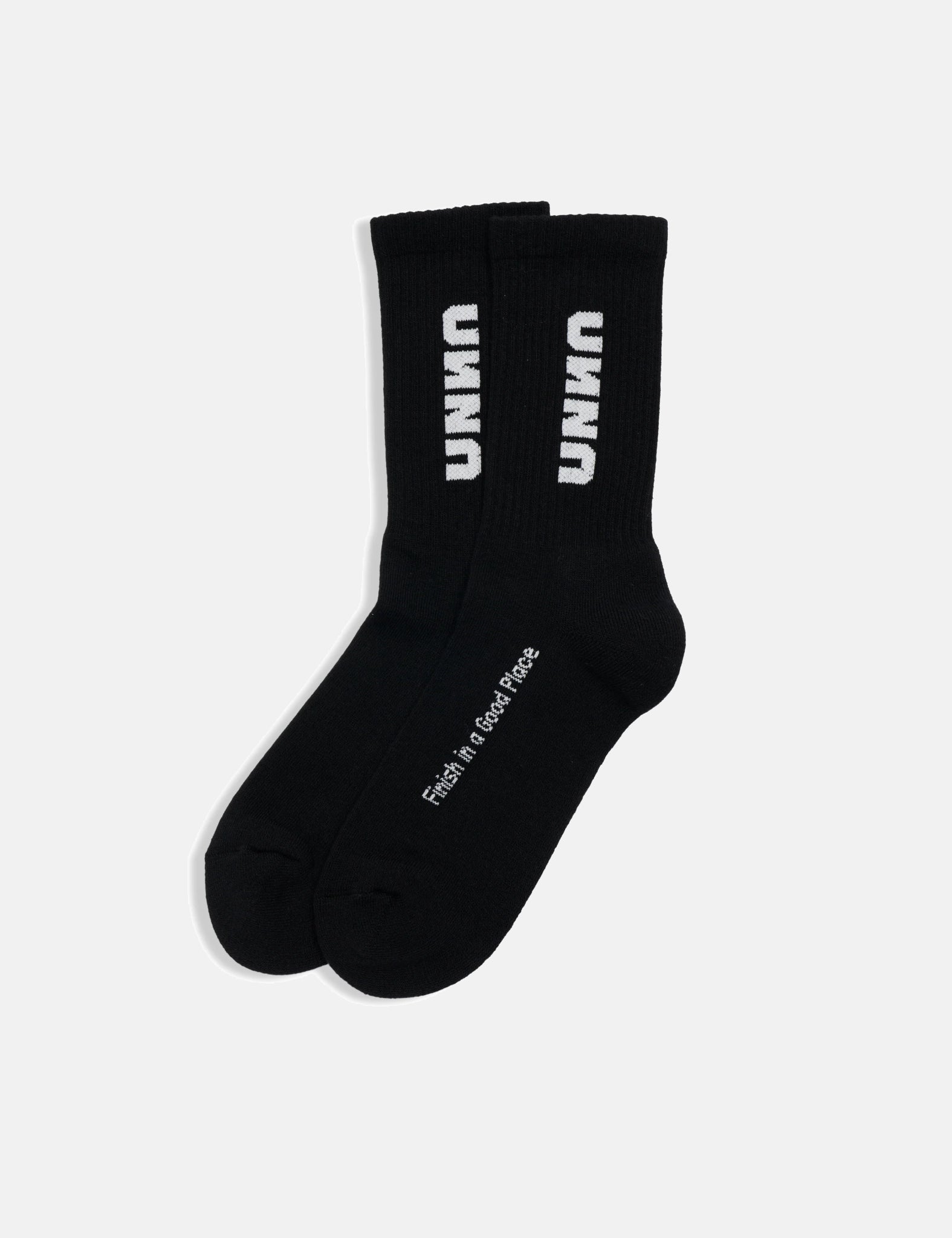 UNNA's 2-Pack of Miracle Socks in black - perfect for your runs! These socks have slight compression and a check composition. With a stitched logo and a motivating "Finish in a Good Place" message, they'll be your new go-to.