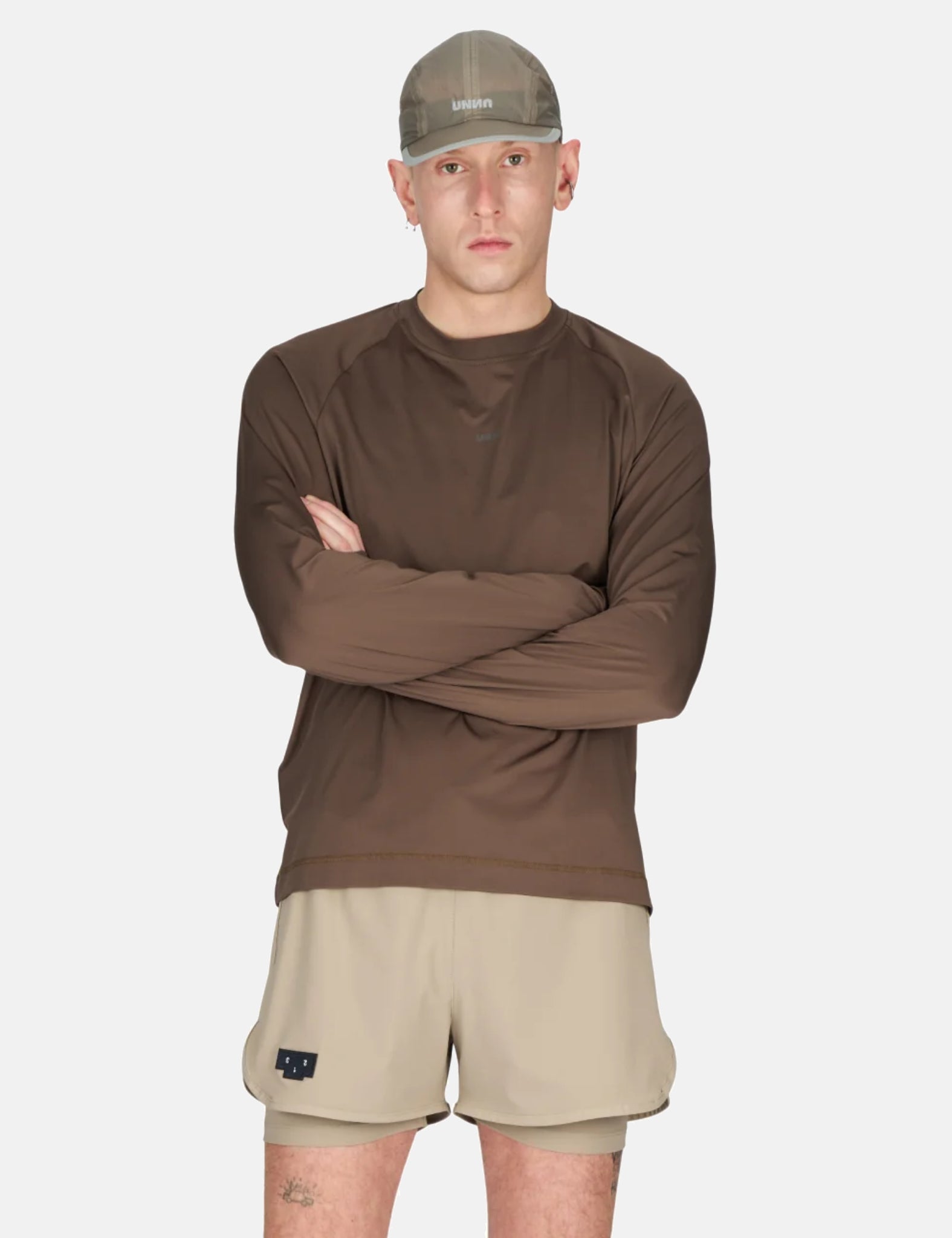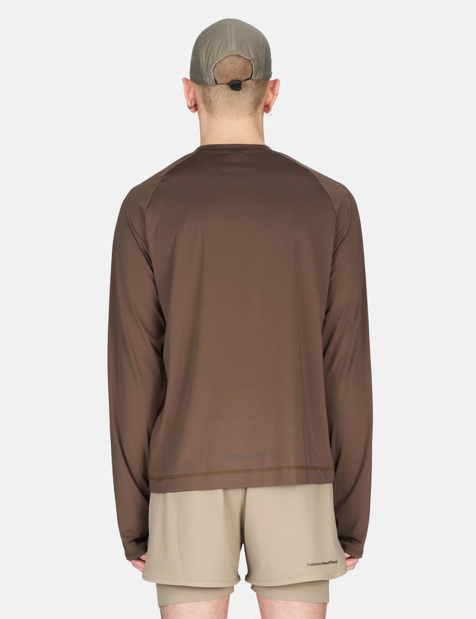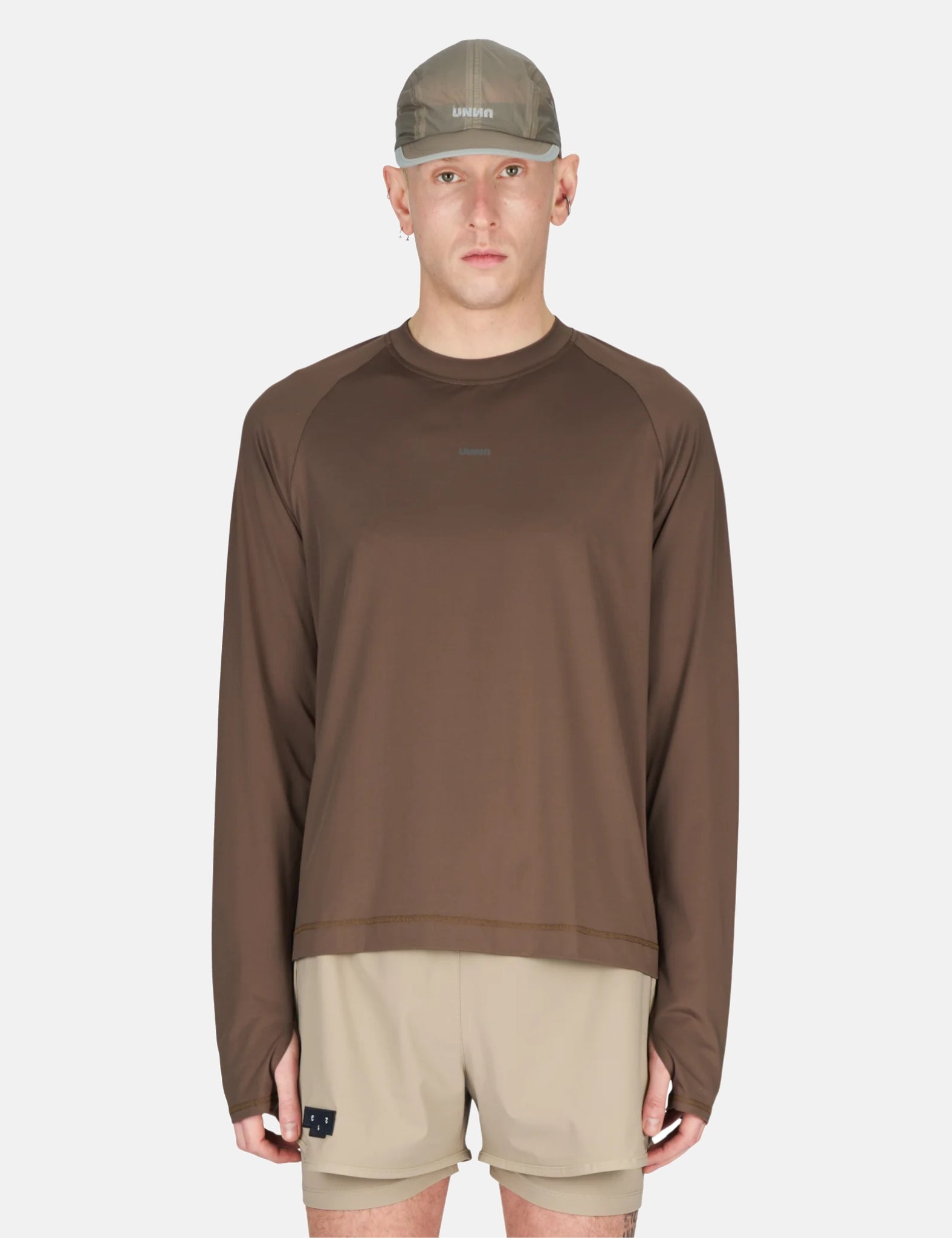 Introducing UNNA's Shiny long sleeve running tee now available in wren brown! This regular fit raglan running T-shirt features thumb holes on the sleeves and a stylish reflective print on the chest and lower back.